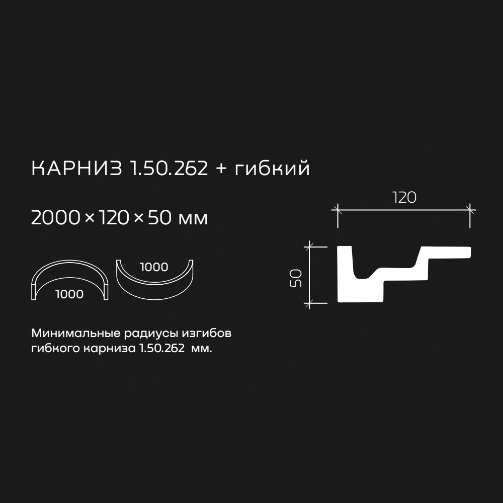 Потолочный плинтус под покраску Европласт 1.50.262 изготовлен из гибкого и влагостойкого пенополиуретана. Материал не выделяет вредных веществ и устойчив к образованию грибка, поэтому подходит для ванных комнат, санузлов, кухонь и балконов. Плинтус может использоваться на закругленных поверхностях и имеет радиус изгиба выпуклый — 1000 мм, радиус изгиба вогнутый — 1000 мм.