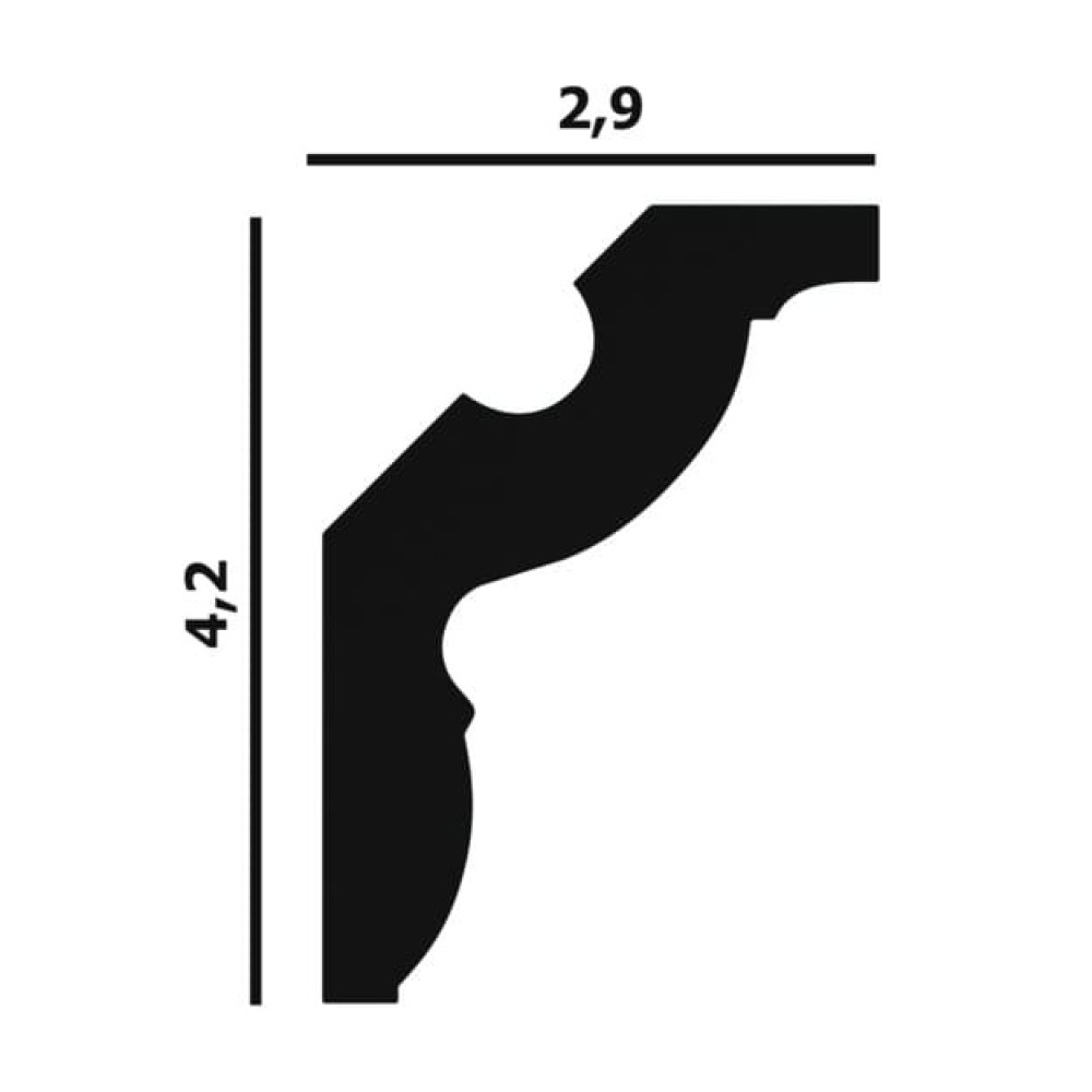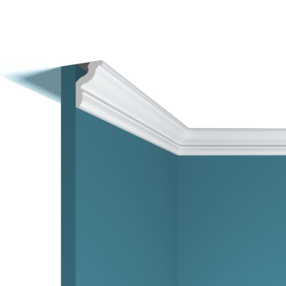 Потолочный плинтус под покраску Перфект Плюс P22 изготовлен из полистирола высокой плотности — ударопрочного и влагостойкого материала. Подходит для декорирования потолков в любых комнатах, в том числе в ванной или на кухне.