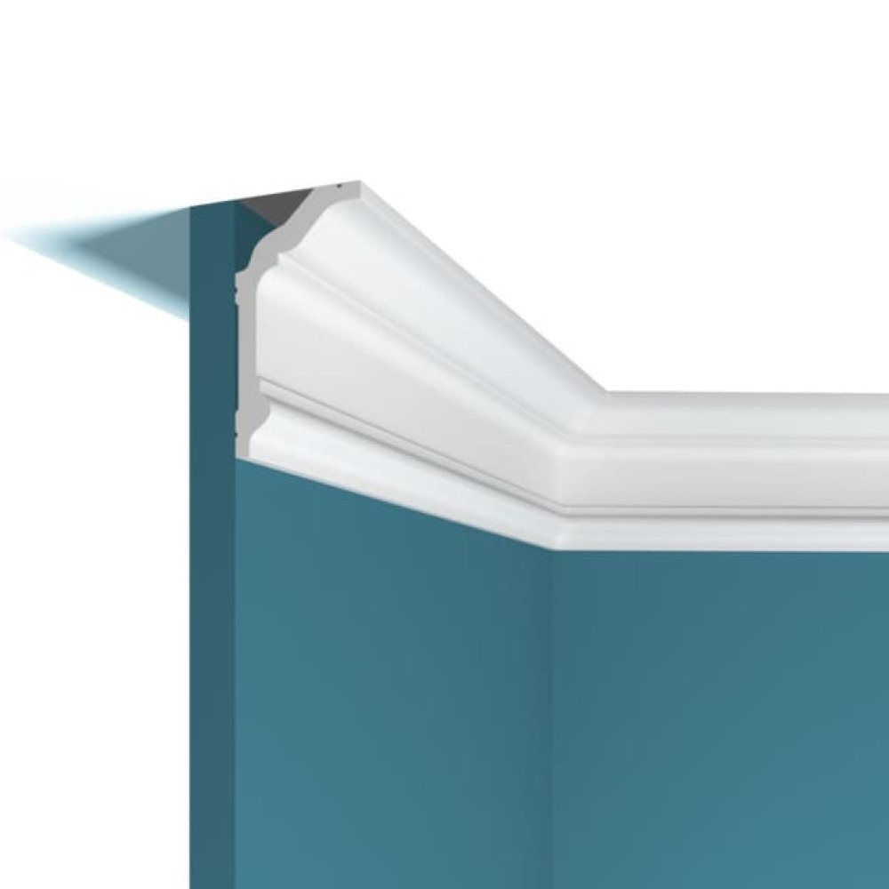 Потолочный плинтус под покраску Перфект Плюс P92 изготовлен из полистирола высокой плотности — ударопрочного и влагостойкого материала. Подходит для декорирования потолков в любых комнатах, в том числе в ванной или на кухне.