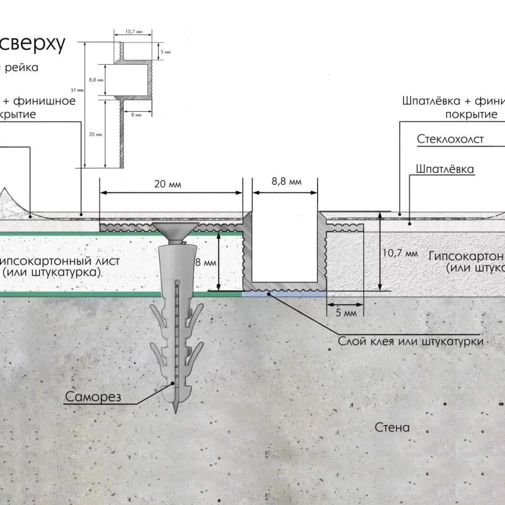 Монтаж теневого профиля Laconistiq Classic с теневым плинтусом
