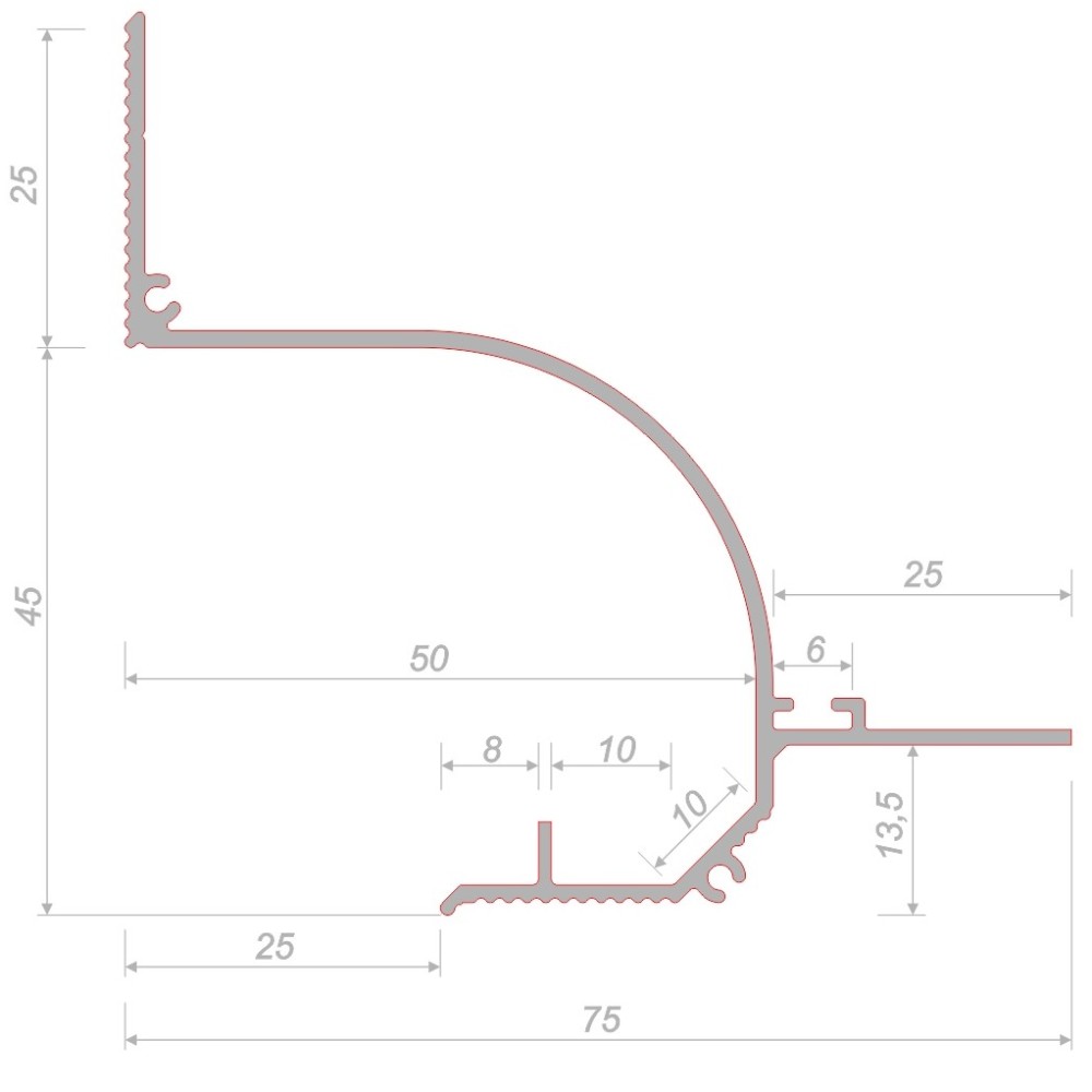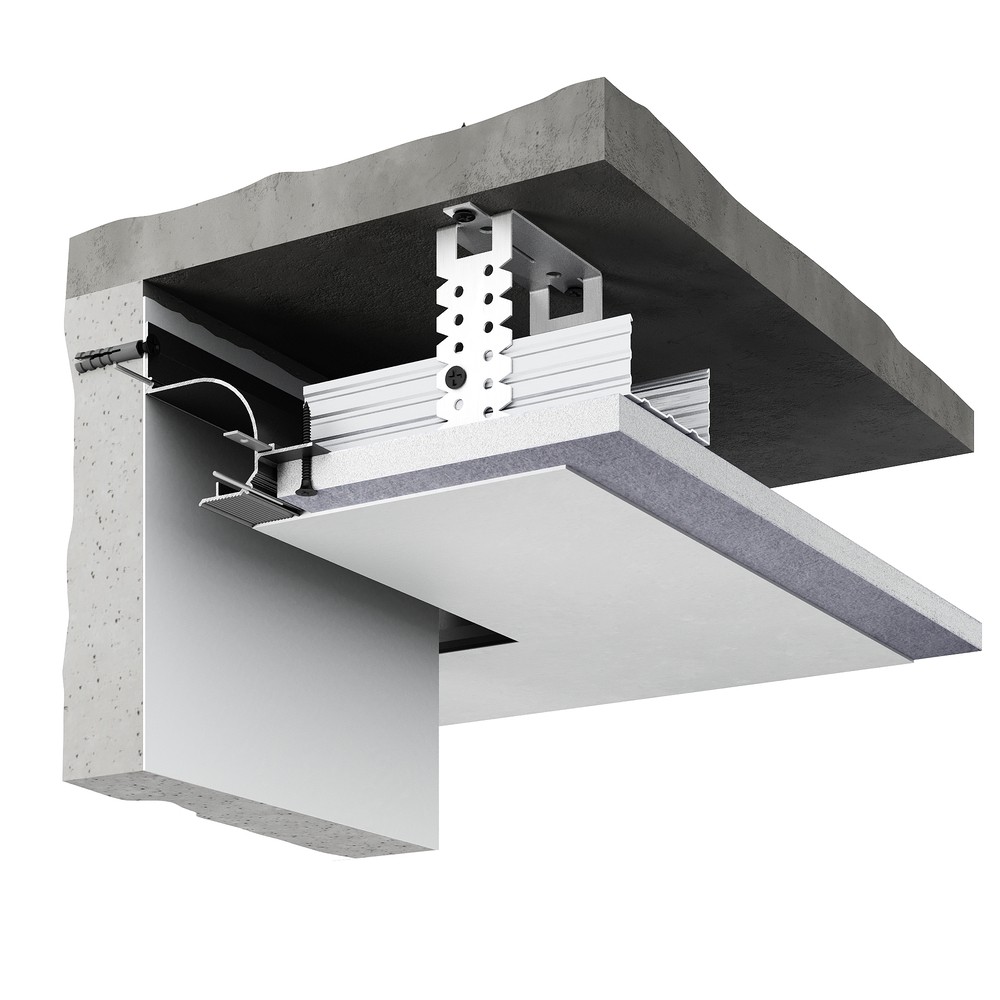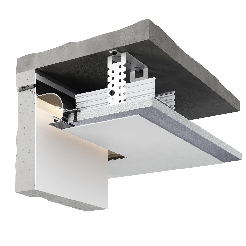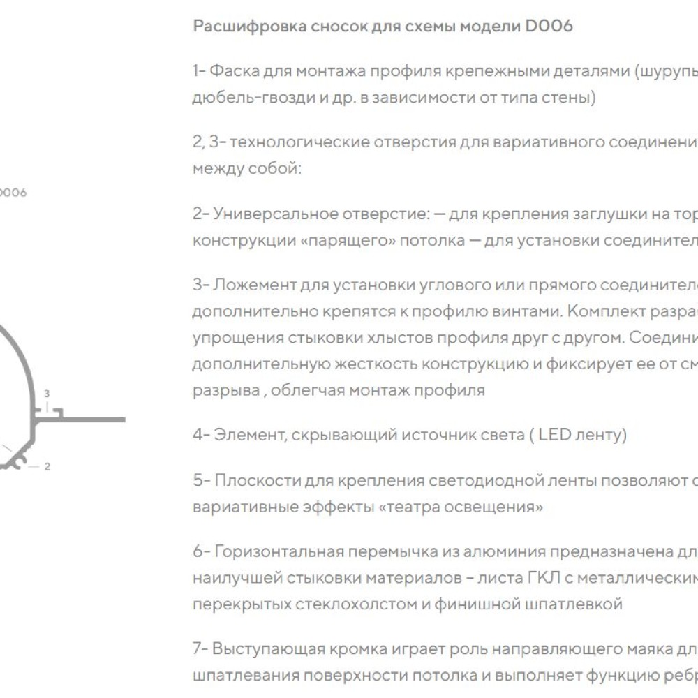 В модели предусмотрена возможность установки LED подсветки (лента приобретается отдельно). Монтаж профиля осуществляется с помощью дюбелей и шурупов к металлокаркасу потолка.