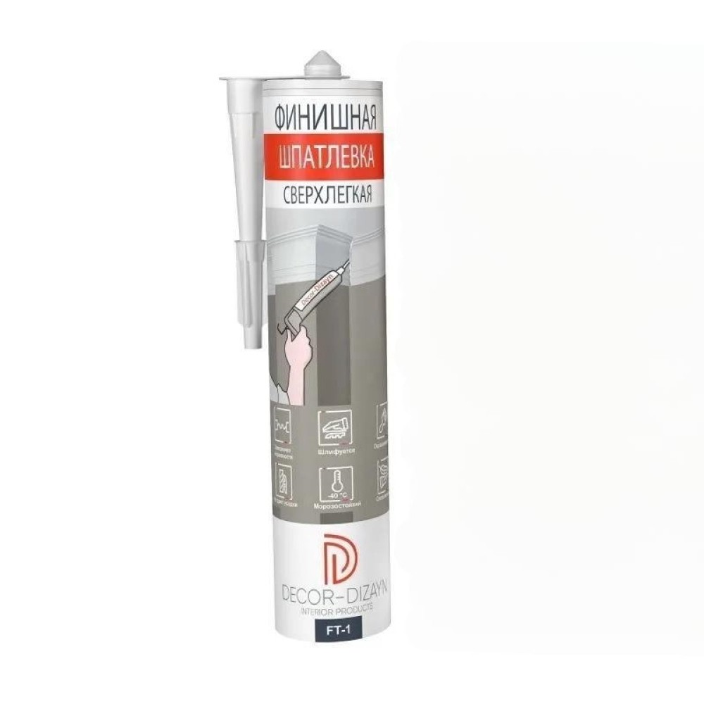Шпатлевка Decor-Dizayn FT-1 предназначена для финишной работы при монтаже изделий из полистирола внутри помещений. Применяется для заделки мест стыков, неровностей на поверхности лепнины или трещин образовавшихся между изделием и стеной при монтаже.
