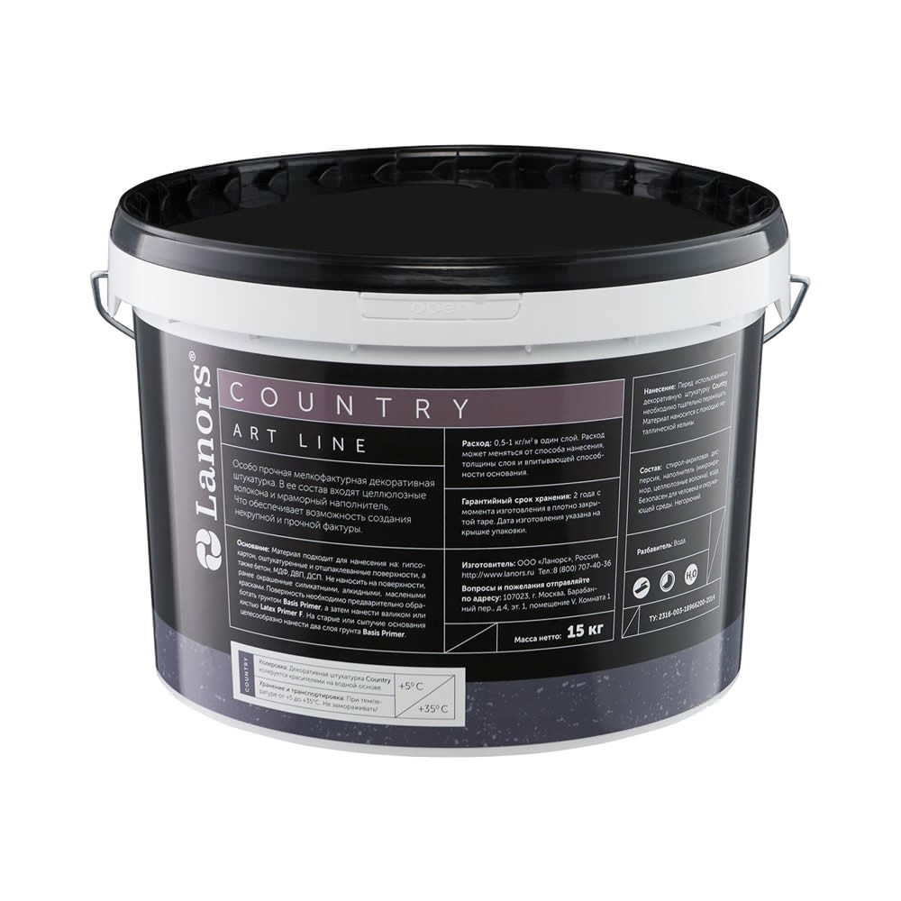 В состав декоративной штукатурки Lanors Country входят целлюлозные волокна и мраморный наполнитель, которые позволяют создавать некрупную и прочную фактуру. Колеруется красителями на водной основе.