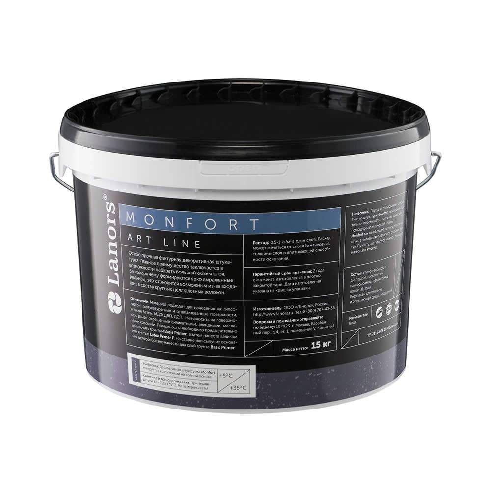 Декоративная штукатурка Lanors Monfort на основе микромрамора позволяет создать крупнозернистые сложные поверхности. Крупные целлюлозные волокна в составе позволяют набирать большой объем слоя, благодаря чему формируются ярко выраженные и прочные рельефы. Придать цвет фактуре можно с помощью Lanors Phoenix.