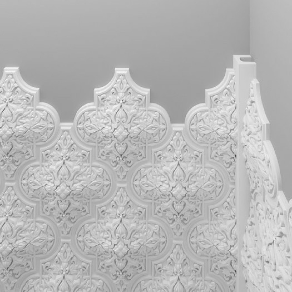 Поверхность изделия загрунтована и готова к покраске. Монтаж производится с помощью монтажного клея, а между собой панели крепятся на стыковочный клей.