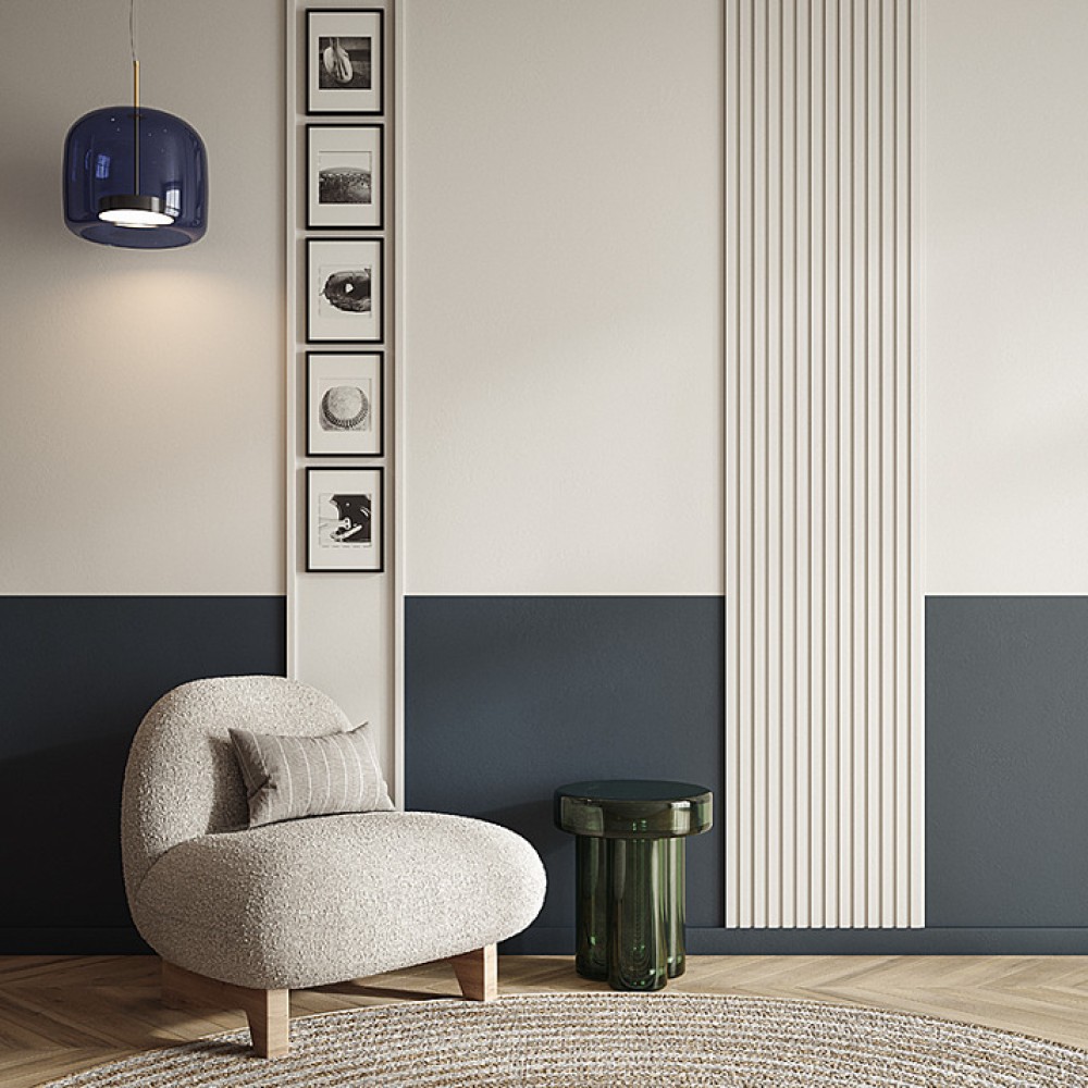 Поверхность изделия загрунтована и готова к покраске. Монтаж производится с помощью монтажного клея, а между собой панели крепятся на стыковочный клей.