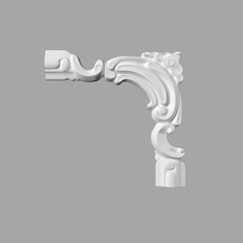 Угловой декоративный элемент Decomaster предназначен для оформления потолков или стен, в сочетании с молдингами. Декор изготовлен из высокопрочного полиуретана и готов к покраске любыми интерьерными акриловыми красками.