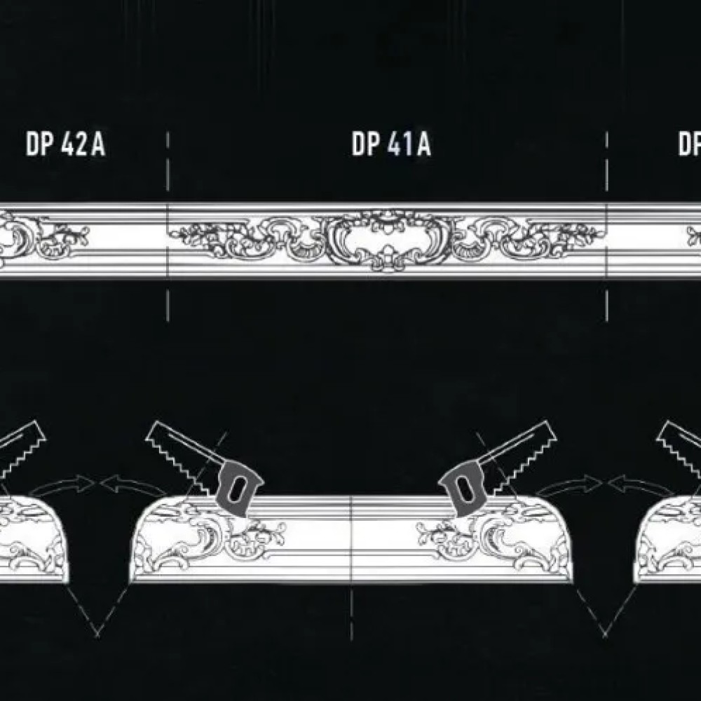Декор продается цельной палкой, которая распиливается, как показано на фото, и приклеивается во внутренний угол стены и потолка.