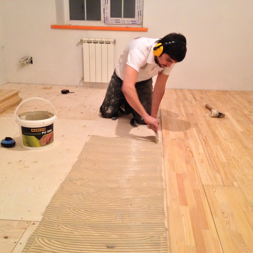 4. Клеевая палубная укладка паркетной и инженерной доски на фанеру.