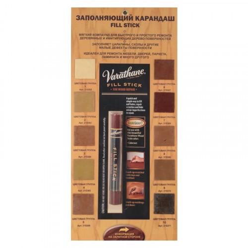 Заполняющий карандаш инновационной серии продуктов Varathane RUST-OLEUM предназначен для устранения немасштабных дефектов поверхностей. Превосходно маскирует средние и небольшие царапины, затиры, сколы, отверстия. Заполняющий карандаш имеет подтвержденную прочность. Легко наносится и эффективно заполняет дефекты. Богатая палитра оттенков, цвета соответствуют морилке серии Varathane Wood Stain. Область применения: поверхности мебели, двери, пол.