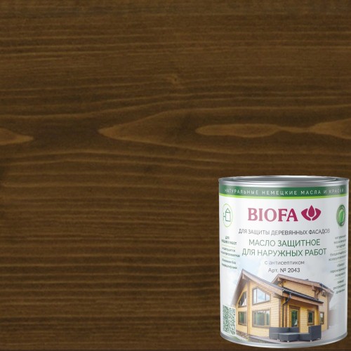 Масло для фасадов Biofa 2043 защищает древесину от высыхания, растрескивания, развития плесени и грибка, а также от выцветания на солнце. Подходит для любых наружных вертикальных поверхностей: деревянных стен, заборов, беседок и прочего.