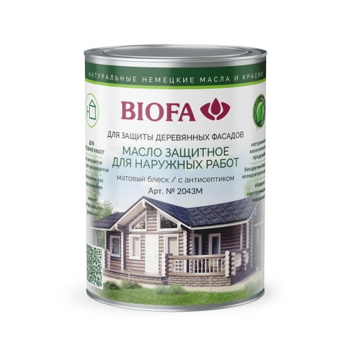 Масло для фасадов Biofa 2043М защищает древесину от высыхания, растрескивания, развития плесени и грибка, а также от выцветания на солнце. Подходит для любых наружных вертикальных поверхностей: деревянных стен, заборов, беседок и прочего.