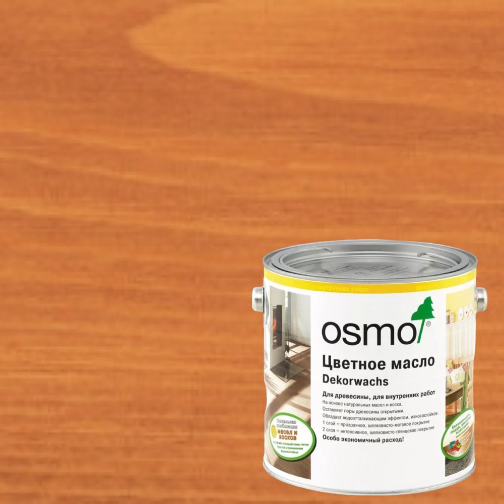 Масло для внутренних работ Osmo Dekorwachs Transparent 3137 предназначено для любых деревянных поверхностей: стен, дверей, полов, мебели и детских игрушек. Цветное масло придает поверхности грязе- и водоотталкивающие свойства, при этом структура древесины остается видимой.
