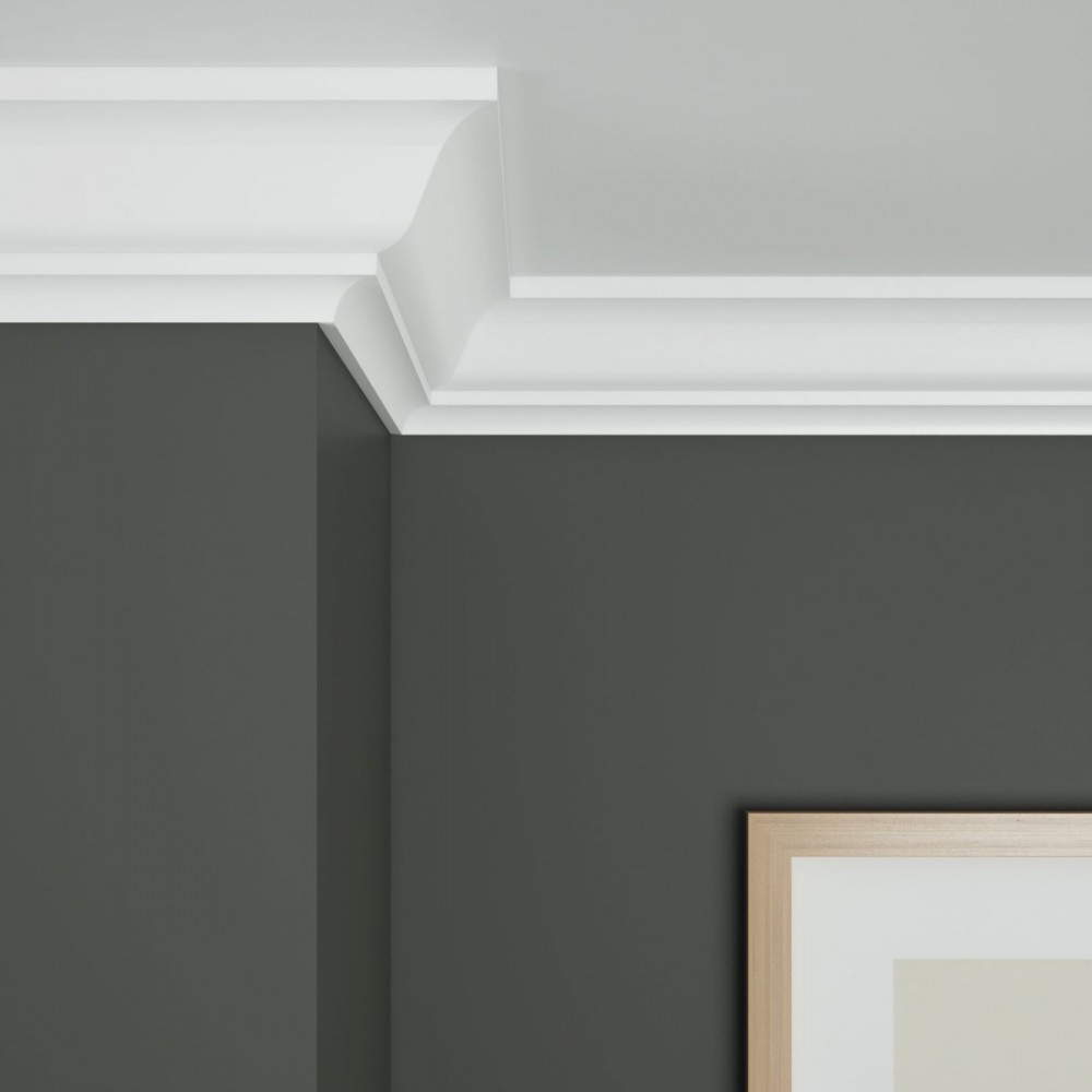 Карниз под покраску Ultrawood CR 001 изготовлен из экологичного ЛДФ-материала и покрыт двумя слоями белого грунта. Готов к покраске сразу после установки. Красится любой влагостойкой краской для стен или дерева, с возможностью регулярной влажной чистки. Мы рекомендуем английскую краску Little Greene — она экологичная, легко наносится и прекрасно моется.