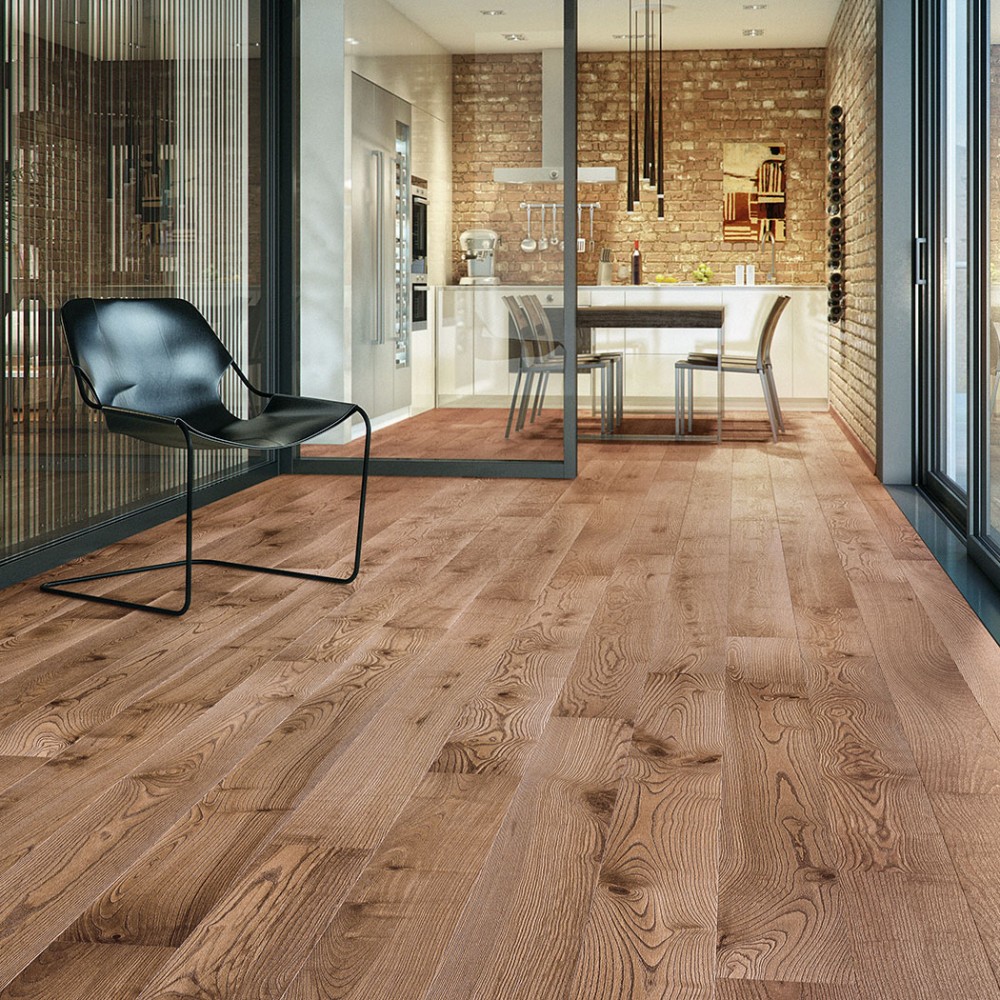 Barlinek ясень Hazelnut Grande – отличное решение для роскошных городских интерьеров, а также загородных домов. Его достаточно большой однополосный формат подойдет для укладки в помещениях со средней и большой площадью. При этом монтаж проходит быстро и без хлопот с помощью замковых соединений Barclick и 5Gs, имеющихся у каждой доски.
