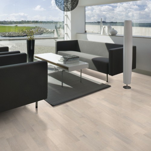 Полупрозрачный белый тонированный и брашированный 3-полосный дубовый пол из коллекции Люмен уравновешивает светлые и тёмные контрасты древесины, мягко просвечивая тёплые дубовые тона. Покрытие ультраматовым лаком подчёркивает естественные узоры древесины, создавая впечатление необработанного, недавно распиленного дерева. Кроме того, такое покрытие эффективно устраняет блики и защищает пол от ежедневного износа.