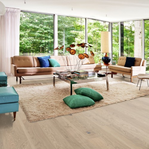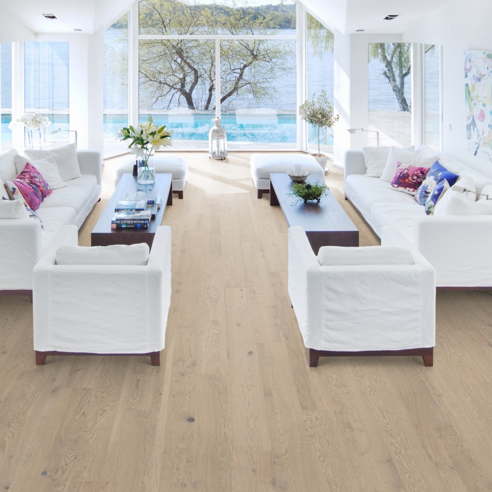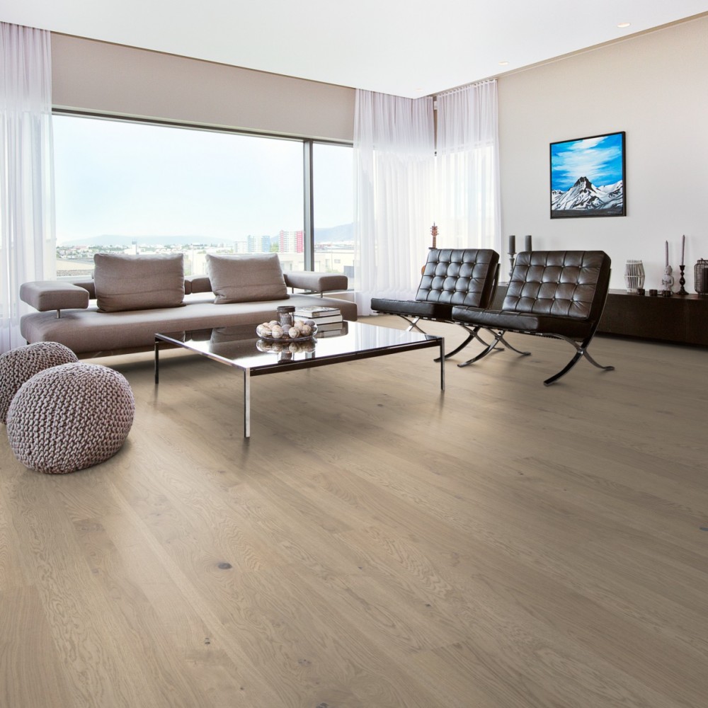 Однополосная тонированная дубовая доска из коллекции Люкс представляет теплые земельные цвета, объединенные с каменными серыми оттенками. Четырехсторонняя микро-фаска создаёт ощущение традиционного дощатого пола. Каждая доска тщательно обработана щеткой до совершенства, чтобы подчеркнуть естественный характер древесины. Покрытие ультраматовым лаком подчёркивает естественные узоры древесины, создавая впечатление необработанного, недавно распиленного дерева. Кроме того, такое покрытие эффективно устраняет блики и защищает пол от ежедневного износа.