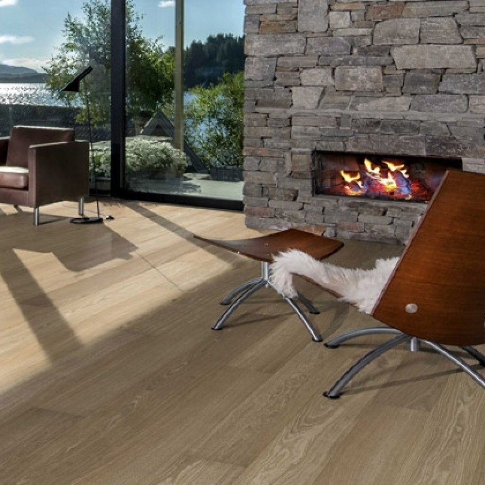 Паркетная доска Kahrs дуб Париж имеет стабильную трехслойную конструкцию и систему замкового соединения, которая позволяет укладывать доску без приклеивания к стяжке.