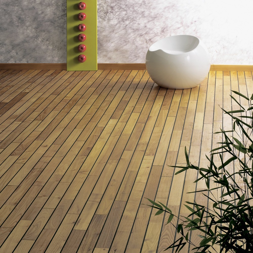 Массивный паркет Navylam+ из акации имеет интегрированную каучуковую вставку, которая препятствует проникновению влаги внутрь соединения шип-паз. После укладки данный паркет имеет вид корабельной палубы.
