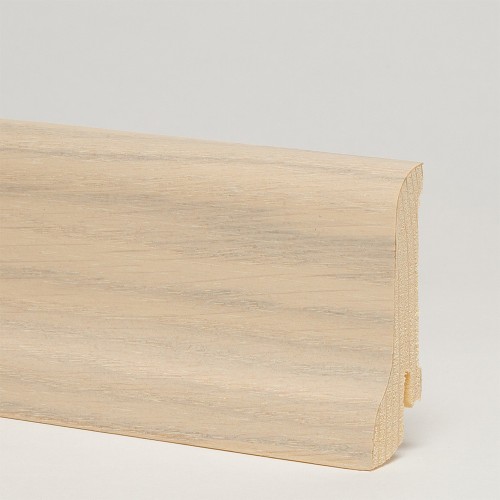 На основание плинтуса приклеивается натуральный шпон дуба толщиной 0,6 мм. Дуб имеет характерный древесный рисунок, насыщенный и выразительный. Он может совмещать в себе множество оттенков — от соломенно-желтого до темно-коричневого с черными вкраплениями. Потемнение со временем незначительное: поверхность приобретает янтарный оттенок.